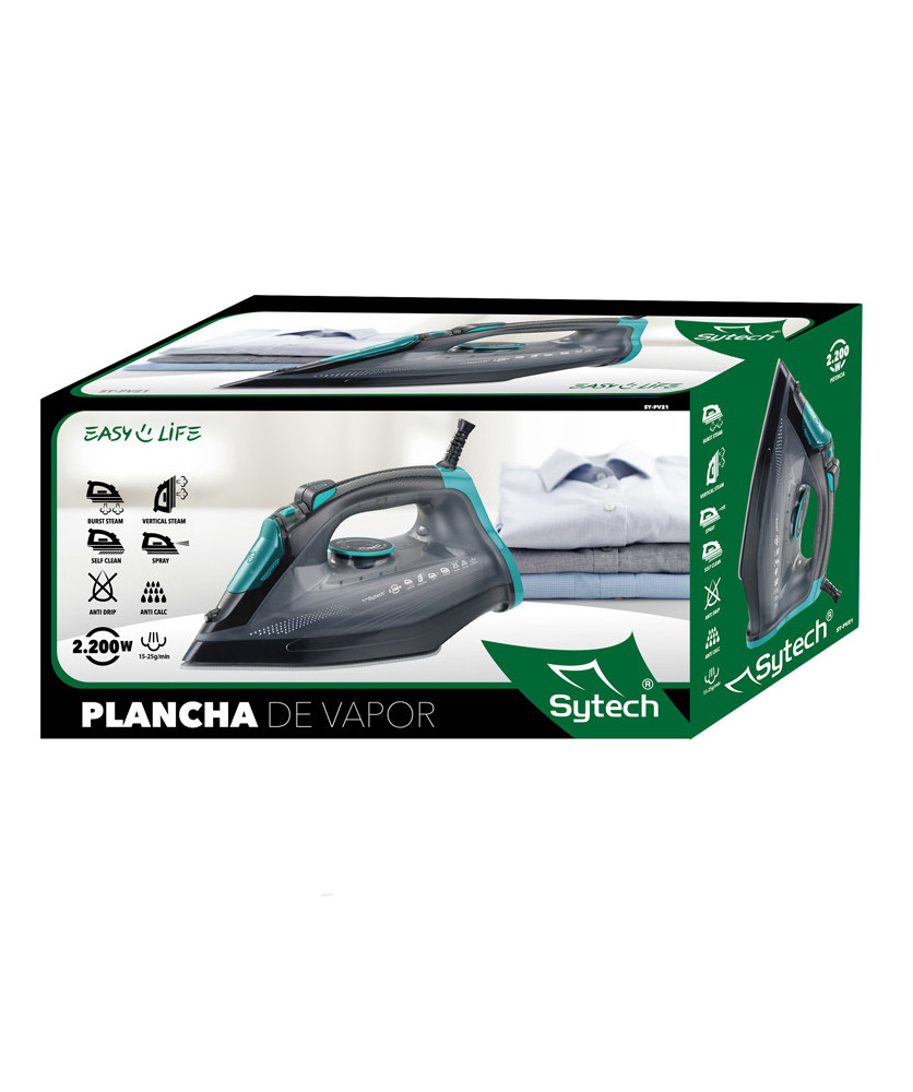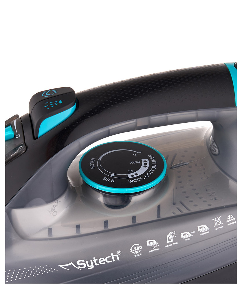 Professional steam iron Ceramic soleplateAnti-Drip, Anti-Cal and self-clean function Ironing options: Vertical, Horizontal, Dry, Burst of steam Overheating safety protection Ergonomic handle for easy useTemperature and vapor regulator 360º rotating cable LED function light indicator