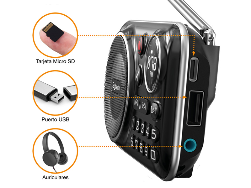 Radio de bolsillo 2 bandasSintonizador AM/FM estéreoPiloto indicador de sintoníaFiltro realce de graves Sintonizador analógicoConexión para auriculares 3.5mm. Accesorios incluidos: Auriculares estéreo, manual de instrucciones